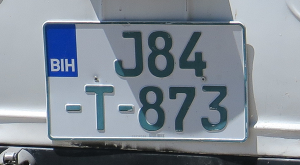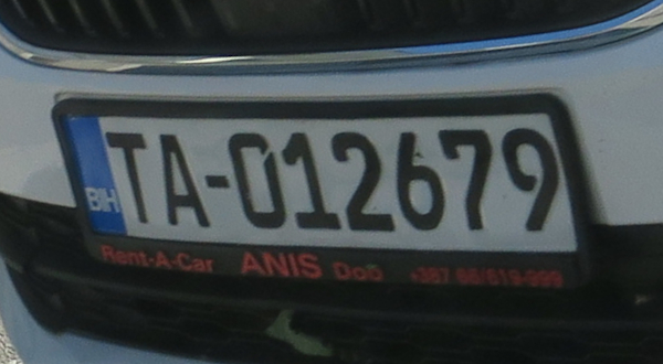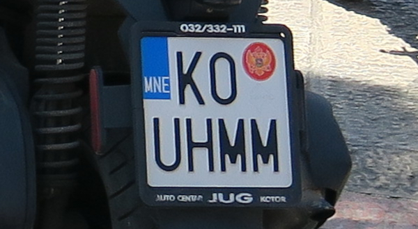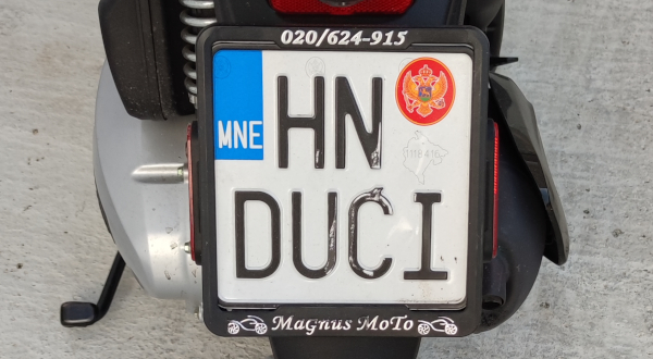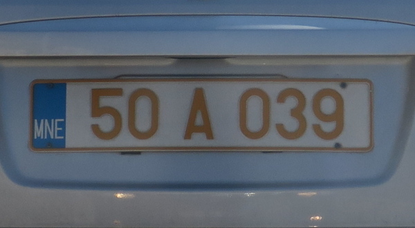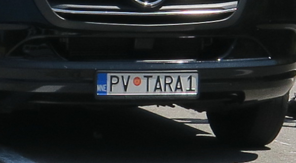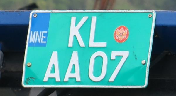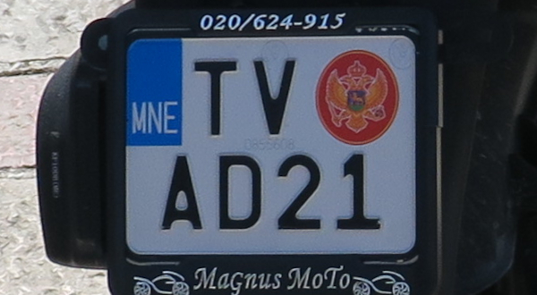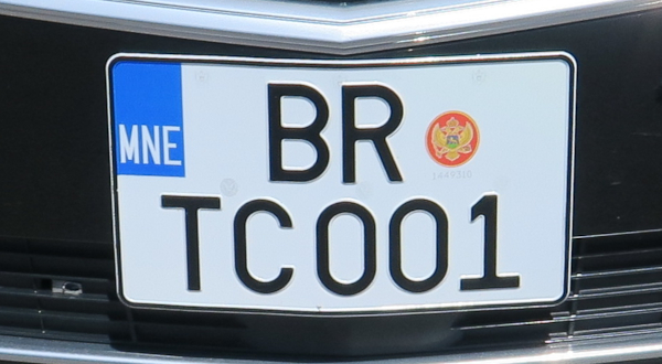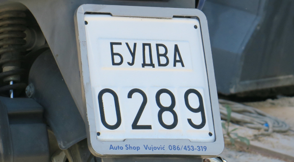 Above the registration is the district name in Cyrillic characters, in this case Budva.