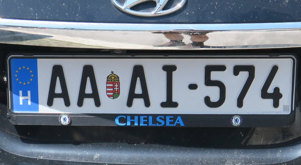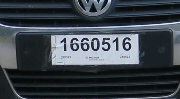 Right of the registration is the month and year of validity in little black panels (May 2023).