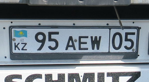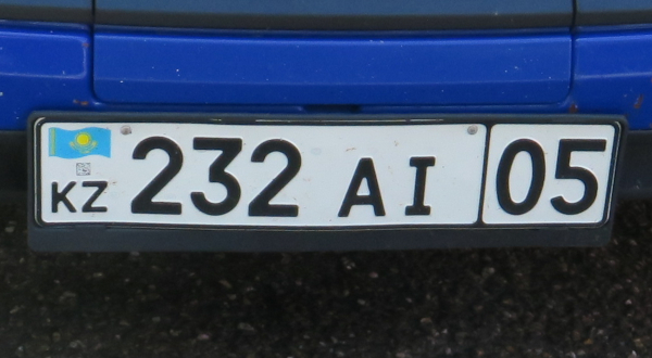 Top left of the registration is the national flag above the oval KZ in black capitals.