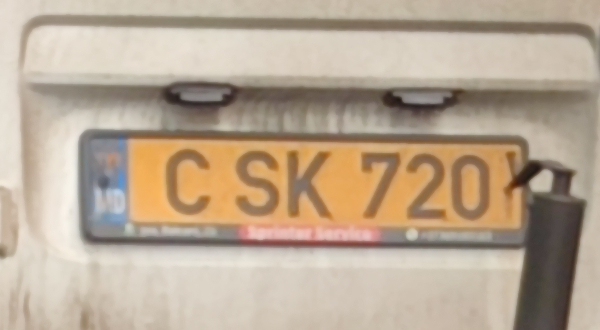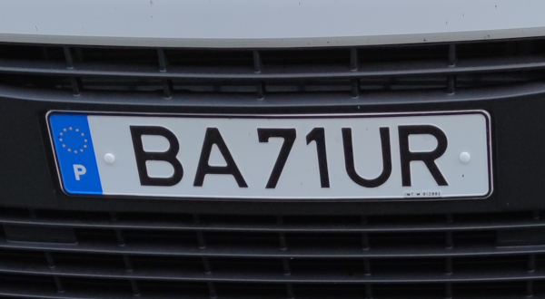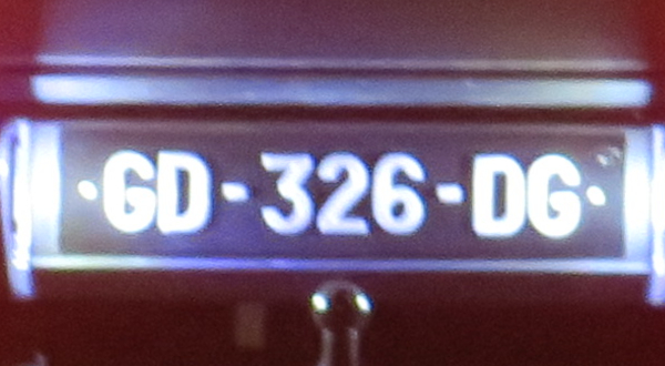 The registration consists of one small letter, followed by three numerals and two small letters.