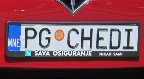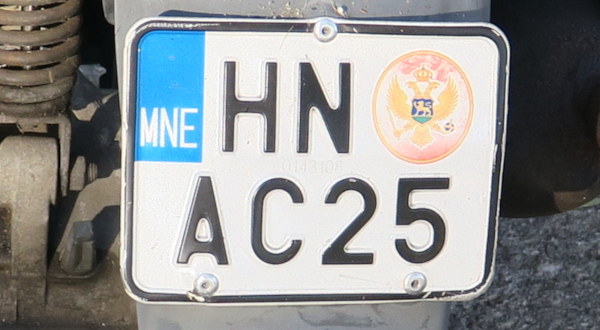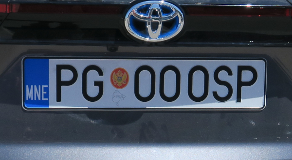 The two letters after the national coat indicate the district where PG stands for Podgorica.