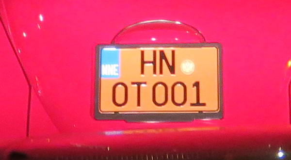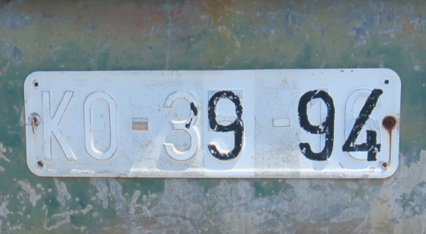 The registration consists of one letter followed by two numerals above a hyphen, one letter, a hyphen and three numerals (Unusual combination of letter O and numeral 0).
