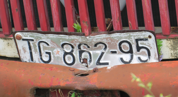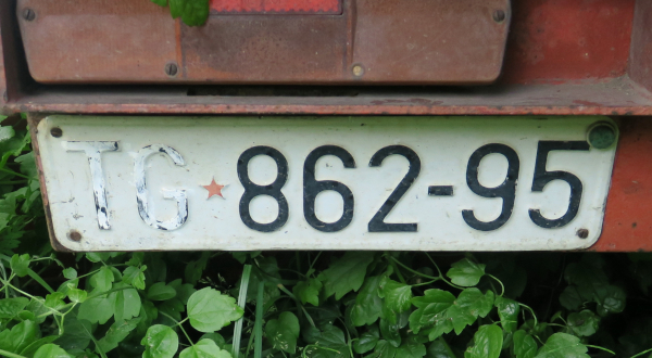 Current agriculture series, two-line plate in green on white (was on a tourist train vehicle, many were seen).