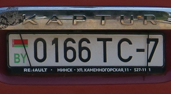 To the left of the plate is the oval BY in green (since 2020) below the Belarusian flag.