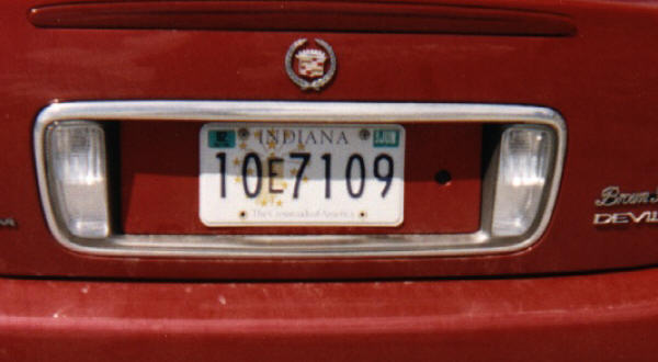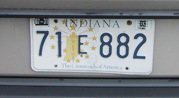 More information on the different states of the USA IndianaPassenger seriesSpecial recognition series Apportioned semi-trailer series Apportioned truck series Temporary series Truck series Passenger series![]() Current passenger series since 2009 in white on blue. The registration consists of three numerals, followed by three letters. At the left of the registration is the emblem on the state flag. At the bottom of the plate is INDIANA in white capitals. At the top of the plate is a sticker with the county name prefixed by the former county code number. In the top corners are month and year stickers (December 7, 2013). ![]() Current passenger series since 2009 in white on blue. The registration consists of three numerals, followed by three letters. At the left of the registration is the emblem on the state flag. At the bottom of the plate is INDIANA in white capitals. At the top of the plate is a sticker with the county name prefixed by the former county code number. In the top corners are month and year stickers (February 21, 2010). ![]() Former passenger series issued between 2003 and 2009 in blue on green. The registration consists of two numerals, followed by one letter and four numerals. The first two numerals denote the county and the letter denotes the district where 53 stands for Monroe and Z for Bloomington. At the top of the plate is INDIANA in blue capitals and at the bottom is the website www.IN.gov in blue. The background shows a grassy field and some farm houses. In the upper left corners are month and year revalidation sticker (15 June 2006). ![]() Former passenger series issued between 2003 and 2009 in blue on green. The registration consists of two numerals, followed by one smaller letter and four numerals. The first two numerals denote the county and the letter denotes the district where 79 stands for Tippecanoe and P for Lafayette. At the top of the plate is INDIANA in blue capitals and at the bottom is the website www.IN.gov in blue. The background shows a grassy field and some farm houses. In the upper left corners are month and year revalidation sticker (30 June 2008). ![]() Former passenger series issued between 2003 and 2009 in blue on green. The registration consists of one numerals, followed by one smaller letter and four numerals. The first numeral denotes the county and the letter denotes the district where 2 stands for Allen and W for Fort Wayne. At the top of the plate is INDIANA in blue capitals and at the bottom is the website www.IN.gov in blue. The background shows a grassy field and some farm houses. In the upper corners are revalidation stickers (2006). ![]() Former passenger series issued between 2003 and 2009 in blue on green. The registration consists of two numerals, followed by one letter and four numerals. The first two numerals denote the county and the letter denotes the district where 96 stands for Lake and K for Gary. At the top of the plate is INDIANA 04 in blue capitals and at the bottom is the website www.IN.gov in blue. The background shows a grassy field and some farm houses. In the upper left corner is a revalidation sticker. ![]() Former passenger series issued between 2003 and 2009 in blue on green. The registration consists of one numerals, followed by one smaller letter and three numerals. The first numeral denotes the county and the letter denotes the district where 3 stands for Bartholomew and F for still unknown. At the top of the plate is INDIANA 04 in blue capitals and at the bottom is the website www.IN.gov in blue. The background shows a grassy field and some farm houses. In the upper left corner is a revalidation sticker (EXP 05-15, meaning the plate expires May 15 2004). ![]() Former personalized series issued between 2003 and 2009 in blue on green. The registration consists of six letters, no coding. At the top of the plate is INDIANA in blue capitals and at the bottom is the website www.IN.gov in blue. The background shows a grassy field and some farm houses. In the upper left corners are month and year revalidation sticker (30 April 2006). ![]() Former passenger series issued between 1999 and 2003 in blue on white. The registration consists of two numerals, followed by one smaller letter and three numerals. The first numerals denote the county and the letter denotes the district where 71 stands for St Joseph and E for South Bend. At the top of the plate is INDIANA in blue capitals. At the bottom of the plate is the slogan The Crossroads of America in blue capitals. The background shows the state in yellow surrounded by stars. In the upper corners are year and month revalidation stickers (31 July 2003). ![]() Former passenger series issued between 1999 and 2003 in blue on white. The registration consists of two numerals, followed by one smaller letter and four numerals. The first numerals denote the county and the letter denotes the district where 10 stands for Clark and E for Sellersburg. At the top of the plate is INDIANA in blue capitals. At the bottom of the plate is the slogan The Crossroads of America in blue capitals. The background shows the state in yellow surrounded by stars. In the upper corners are year and month revalidation stickers. ![]() Former passenger series issued between 1991 and 1993 in red on white. The registration consists of two numerals, followed by a smaller letter and four numerals. The first two numerals denote the county where 18 stands for Delaware. At the top of the plate is a blue stripe above which was INDIANA in red capitals. Top right of the registration is the year of the registration (93) in blue. At the top of the plate is a red line, below which is an outline of the state and the slogan Hoosier Hospitality, both in blue. Special recognition series![]() Special recognition series since 1991 in blue on white. The registration consists of two letters, vertically aligned, followed by four numerals. The letters denote the organization, where MM stands for freemason. The logo is at the l