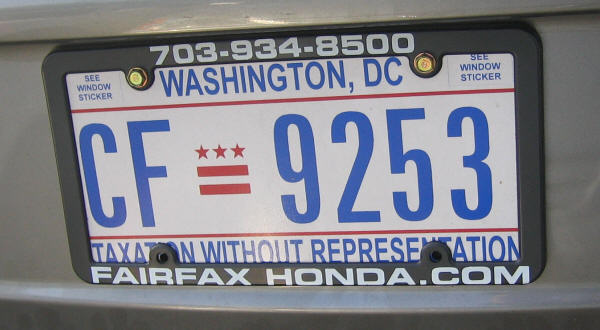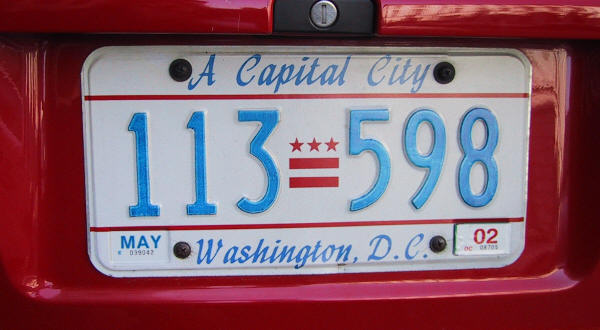 More information on the different states of the USA District of ColumbiaPassenger seriesHistoric series Passenger series![]() Current passenger series since 2000 in blue on white. The registration consists of two letters, followed by four numerals in between two red lines. In the middle of the registration are two red lines below three red stars. At the top of the plate, above the red line, is Washington DC in blue. At the bottom of the plate, below the red line, is TAXATION WITHOUT REPRESENTATION in blue capitals. There are no revalidation stickers on the plate itself anymore, instead there is a windscreen sticker, since April 2002. ![]() Current passenger series since 2000 in blue on white. The registration consists of two letters, followed by four numerals in between two red lines. In the middle of the registration are two red lines below three red stars. At the top of the plate, above the red line, is Washington DC in blue. At the bottom of the plate, below the red line, is TAXATION WITHOUT REPRESENTATION in blue capitals. There are no revalidation stickers on the plate itself anymore, instead there is a windscreen sticker, since April 2002. ![]() Current passenger series since 2000 in blue on white. The registration consists of two letters, followed by four numerals in between two red lines. In the middle of the registration are two red lines below three red stars. At the top of the plate, above the red line, is Washington DC in blue. At the bottom of the plate, below the red line, is TAXATION WITHOUT REPRESENTATION in blue capitals. There are no revalidation stickers on the plate itself anymore, instead there is a windscreen sticker, since April 2002. ![]() Current passenger series since 2000 in blue on white. The registration consists of two letters, followed by four numerals in between two red lines. In the middle of the registration are two red lines below three red stars. At the top of the plate, above the red line, is Washington DC in blue. There are no revalidation stickers on the plate itself anymore, instead there is a windscreen sticker, since April 2002. ![]() Former passenger series issued between 1997 and 2000 in blue on white. The registration consists of two letters, followed by four numerals in between two red lines. In the middle of the registration are two red lines below three red stars. At the top of the plate, above the red line, is Washington DC in blue. At the bottom of the plate, below the red line, is the slogan Celebrate & Discover in blue. In the top corners are month and year revalidation stickers (November 2003). ![]() Former passenger series issued between 1991 and 1997 in blue on white. The registration consists of three numerals, followed by three numerals in between two red lines. In the middle of the registration are two red lines below three red stars. At the top of the plate, above the red line, is the slogan A Capital City in blue. At the bottom of the plate, below the red line, is Washington DC in blue. In the lower corners are month and year revalidation stickers (May 2002). Historic series![]() Current historic motorcycle verhicle (vehicles at least 25 years old) series in blue on white with a red border. The registration consists of four numerals. At the top of the plate is HISTORIC MOTOR VEHICLE, at the bottom DISTRICT OF COLUMBIA, both in blue capitals. In front of the registration are the letters HMV in blue are vertically aligned. To the left is the Capitol dome and D.C. flag in red, white and blue. There are no revalidation stickers on the plate itself anymore, instead there is a windscreen sticker, since April 2002. Previous page : Delaware Next page : Florida![]() |