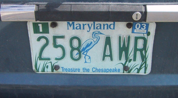 More information on the different states of the USA MarylandPassenger seriesMulti-purpose series Passenger series![]() Current passenger series since 14th June 2010, front plate in dark blue on white. The registration consists of one numeral, followed by two letters vertically aligned and four numerals. At the top of the plate is MARYLAND in blue above WAR OF 1812 in red. To the left is the United States flag (War of 1812) above a building. To the right is a red starburst. At the bottom of the plate is a blue band with WWW.STARSPANGLED200.ORG in white capitals. ![]() Current passenger series since 14th June 2010 in dark blue on white. The registration consists of one numeral, followed by two letters vertically aligned and four numerals. At the top of the plate is MARYLAND in blue above WAR OF 1812 in red. In the top corners are month and year revalidation stickers (March 2015). To the left is the United States flag (of 1812) above a building. To the right is a red starburst. ![]() Former passenger series issued between late 2004 and 13th June 2010 in black on white. The registration consists of one numeral and two letters, followed by one letter and two numerals. In the middle of the registration is the state shield. At the top of the registration is Maryland in black. At the bottom of the plate is www.maryland.gov in black since early 2005. ![]() Former passenger series issued between late 2004 and 13th June 2010 in black on white. The registration consists of one numeral and two letters, followed by one letter and two numerals. In the middle of the registration is the state shield. At the top of the registration is Maryland in black. At the bottom of the plate is www.maryland.gov in black since early 2005. In the top corner are month and year revalidation stickers (July 2007). ![]() Former passenger series issued between 1986 and late 2004 in black on white. The registration consists of three letters, followed by three numerals. In the middle of the registration is the state shield. At the top of the registration is Maryland in black. In the top corners are month and year revalidation stickers (June 2006). ![]() Former passenger series issued between 1986 and late 2004 in black on white. The registration consists of three letters, followed by three numerals. In the middle of the registration is the state shield. At the top of the registration is Maryland in black. In the top corners are month and year revalidation stickers (April 2007). ![]() Multi-purpose vehicle in black on white. The registration consists of three numerals, followed by the letter M and three numerals. At the top of the plate is Maryland in black. In the upper corners are month and year revalidation stickers (June 2007). ![]() Optional series (revised design) since 2005 in black on blue. The registration consists of five numerals, followed by two letters, vertically aligned. At the top of the plate is MARYLAND in white capitals and at the bottom is the slogan Treasure the Chesapeake in blue. The background shows a some green reeds with a heron at the left and the Maryland Blue Crab at the right. In the upper corners are month and year revalidation stickers (July 2007). ![]() Optional series (revised design) since 2005 in black on blue. The registration consists of five numerals, followed by two letters, vertically aligned. At the top of the plate is MARYLAND in white capitals and at the bottom is the slogan Treasure the Chesapeake in blue. The background shows a some green reeds with a heron at the left and Maryland Blue Crab at the right. In the upper corners are month and year revalidation stickers (July 2007). ![]() Optional series since January 1991 in green on white. The registration consists of three numerals and three letters. At the top of the plate is Maryland and at the bottom is the slogan Treasure the Chesapeake all in blue. The background shows a heron in the middle of the registration and some green reeds at the bottom. In the upper corners are month and year revalidation stickers (January 2003). ![]() Optional series since January 1991 in green on white. The registration consists of three numerals and three letters. At the top of the plate is Maryland and at the bottom is the slogan Treasure the Chesapeake all in blue. The background shows a heron in the middle of the registration and some green reeds at the bottom. In the upper corners are month and year revalidation stickers (May 2004). Multi-purpose series![]() Current multi-purpose series since 2007 in black on white. The registration consists of five numerals, followed by the letter M and one numeral. At the top of the plate is Maryland in black. At the bottom of the plate is www.maryland.com in black. ![]() Former multi-purpose vehicle in black on white. The registration consists of the letter M followed by six numerals. At the top of the plate is Maryland in black. In the upper corners are month and year revalidation stickers (April 2003). ![]() Former multi-purpose vehicle in black on white. The registration consists of the letter M followed by six numerals. At the top of the plate is Maryland in black. In the upper corners are month and year revalidation stickers (March 2005). Previous page : Maine Next page : Massachusetts![]() |